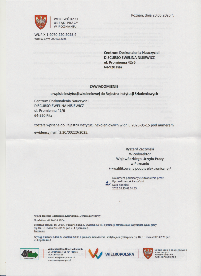 Wpis do Rejestru Instytucji Szkoleniowych